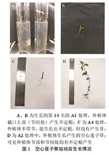 空心蓮子草在組培實(shí)驗(yàn)上的成功有助于進(jìn)一步對(duì)其從生理方向進(jìn)行研究。筆者發(fā)現(xiàn)節(jié)間處生根現(xiàn)象在空心蓮子草中較為普遍,這一發(fā)現(xiàn)有助于揭曉空心蓮子草的入侵機(jī)理,在日后的防治中能夠更加精準(zhǔn)地對(duì)其進(jìn)行防控。