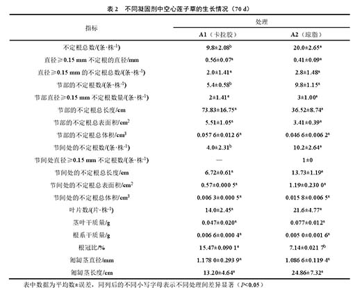 2.2 不同凝固劑對(duì)空心蓮子草生長(zhǎng)情況的影響