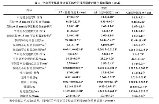 2.5 外植體節(jié)下部分的扦插深度對(duì)空心蓮子草的生長(zhǎng)影響