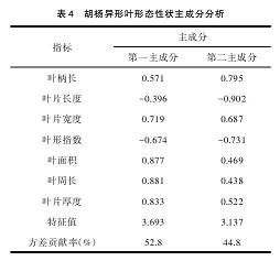 2.1.1 胡楊異形葉形態性狀主成分分析