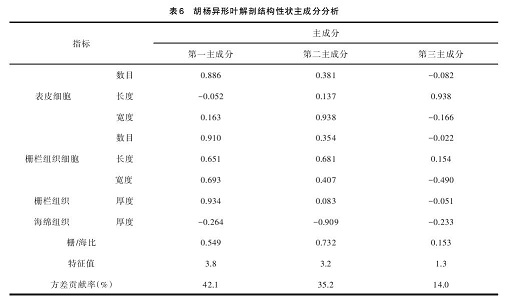 2.1 胡楊異形葉形態結構性狀主成分分析