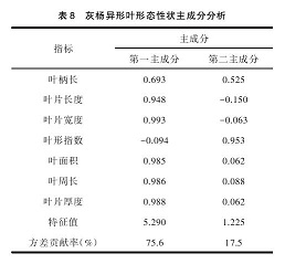 2.2 灰楊異形葉形態結構性狀主成分分析