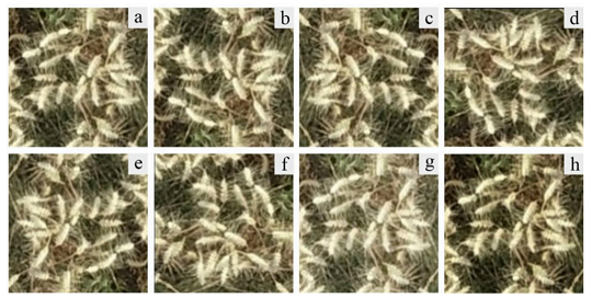 圖3 據增強:(a)原始圖像,(b)旋轉90°,(c)旋轉180°,(d)旋轉270°,(e)垂直翻轉,(f)水平翻轉,(g)和(h)亮度平衡。
