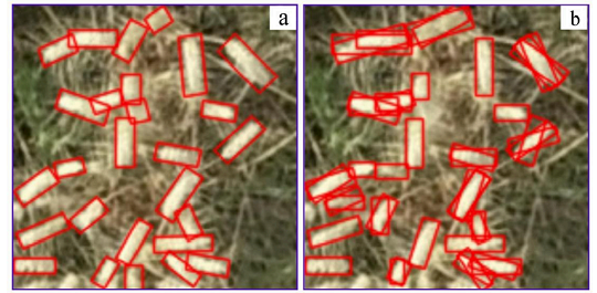 圖9使用CSL(a)和無CSL(b)角度分類的模型檢測結果。紅色邊框表示檢測結果。
