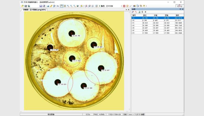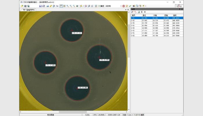 4、★平皿可任意方向擺放。具有相機畫面畸變尺寸自動校正特性、抑菌圈樣本自動挑選、保真的可視化比對、編輯功能。抑菌圈測量系統的讀數分辨率≤0.001mm,重復測量誤差≤±0.016mm;效價測量誤差≤±0.15%;效價重復測量誤差≤±0.15%;臺間測量差異≤0.2%。