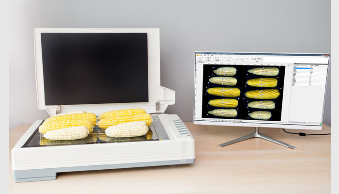 1、配最高分辨率1600dpi × 1600dpi紫光M1彩色掃描儀,掃描分析區為A3幅面431.8mm×304.8 mm。可同時成像分析10個玉米果穗、35個玉米截面、1000粒左右玉米籽粒。