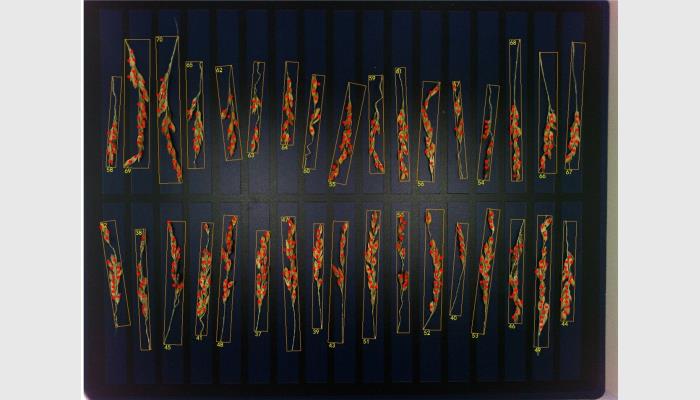 2、★一鍵化自動(dòng)分析獲得谷穗的一級(jí)枝梗及對(duì)應(yīng)一級(jí)枝梗下的二級(jí)枝梗的各枝梗長(zhǎng)、對(duì)應(yīng)各級(jí)穗粒數(shù)、著粒密度及各平均值等。