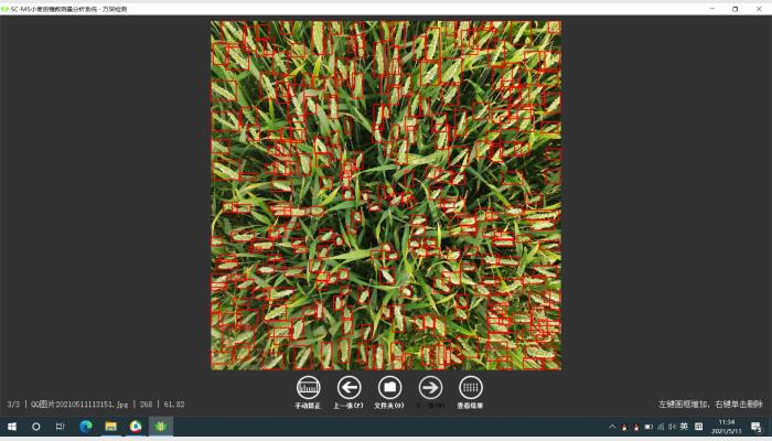 6、★具有遮擋率和靈敏度補(bǔ)償特性,對小麥在楊花期、灌漿期、半成熟期的數(shù)麥穗誤差<±4%,可縮放圖像查看和點(diǎn)擊修正,以達(dá)100%正確數(shù)穗。