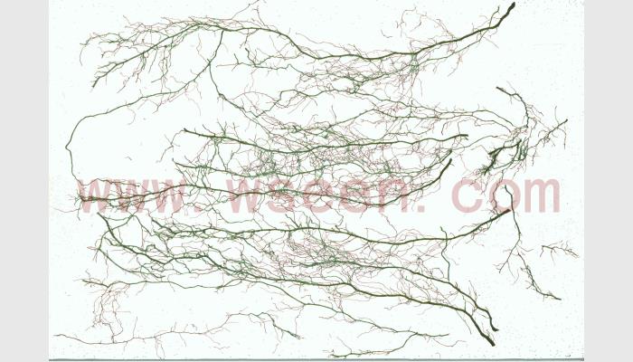 (12)能進行根系的拓撲分析,自動確定根的連接數、關系角等,還能單獨地自動分析主根或任意一支側根的長度和分叉數等,可單獨顯示標記根系的任意直徑段相應各參數(分檔數、檔直徑范圍任意可改,可不等間距地自定義),并能進行根的分叉裁剪、合并、連接等修正,修正操作能回退,以快速獲得100%正確的結果。