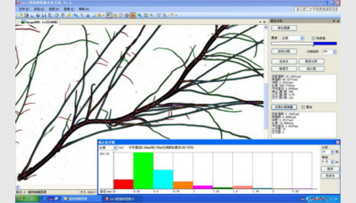 (3)能進(jìn)行根系的顏色分析,確定出根系存活數(shù)量,輸出不同顏色根系的直徑、長(zhǎng)度、投影面積、表面積、體積。