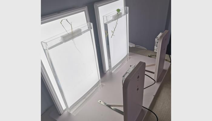 2、實時監測4個視野的水培作物植株,標配4套動態生長監測拍照成像硬件(含4個240mm 寬*380mm高的透明培養扁盒)。