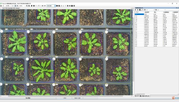 (5)其它:不同生長時期自動批量化處理分析,多植株網格分析,直線、角度等幾何測量,各測量結果可編輯修正。