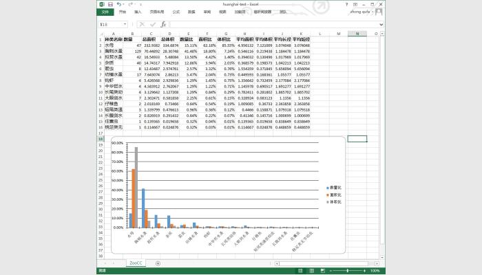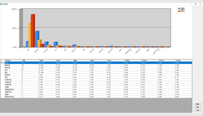 (6)可分析統(tǒng)計每類浮游動物的數(shù)量、面積、體積、及其占比;對各分類進(jìn)行排序及柱狀圖顯示占比情況。